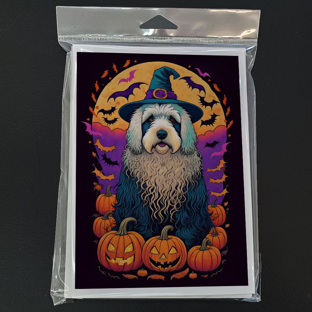 Old English Sheepdog Witchy Halloween Greeting Cards Pack of 8 Blank Cards with Envelopes Whimsical A7 Size 5x7 Blank Note Cards